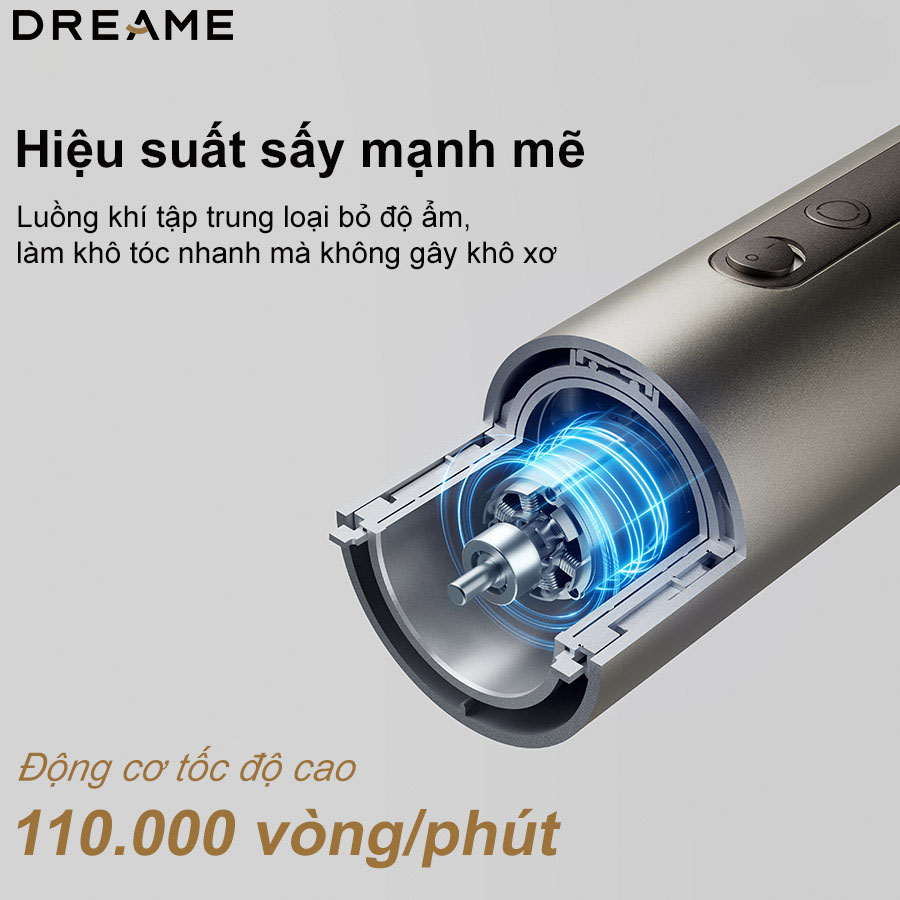 Hiệu suất sấy khô là một trong những điểm mạnh cốt lõi của Dreame AirStyle, nhờ vào việc trang bị động cơ không chổi than tốc độ cao 110.000 vòng/phút.