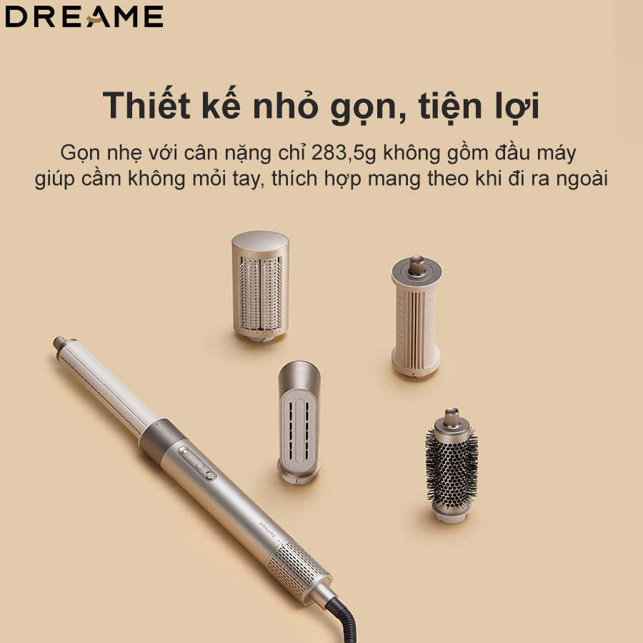 Thiết kế Gọn nhẹ, Tiện lợi: Máy sấy và tạo kiểu Dreame AirStyle có trọng lượng siêu nhẹ, chỉ 283,5g (không bao gồm đầu sấy), giúp người dùng cầm nắm và thao tác tạo kiểu trong thời gian dài mà không bị mỏi tay. Kích thước nhỏ gọn, cùng với bề mặt hoàn thiện tông màu trang nhã, hiện đại, không chỉ tăng tính thẩm mỹ mà còn lý tưởng cho việc cất giữ, bảo quản hay mang theo khi đi du lịch, công tác.