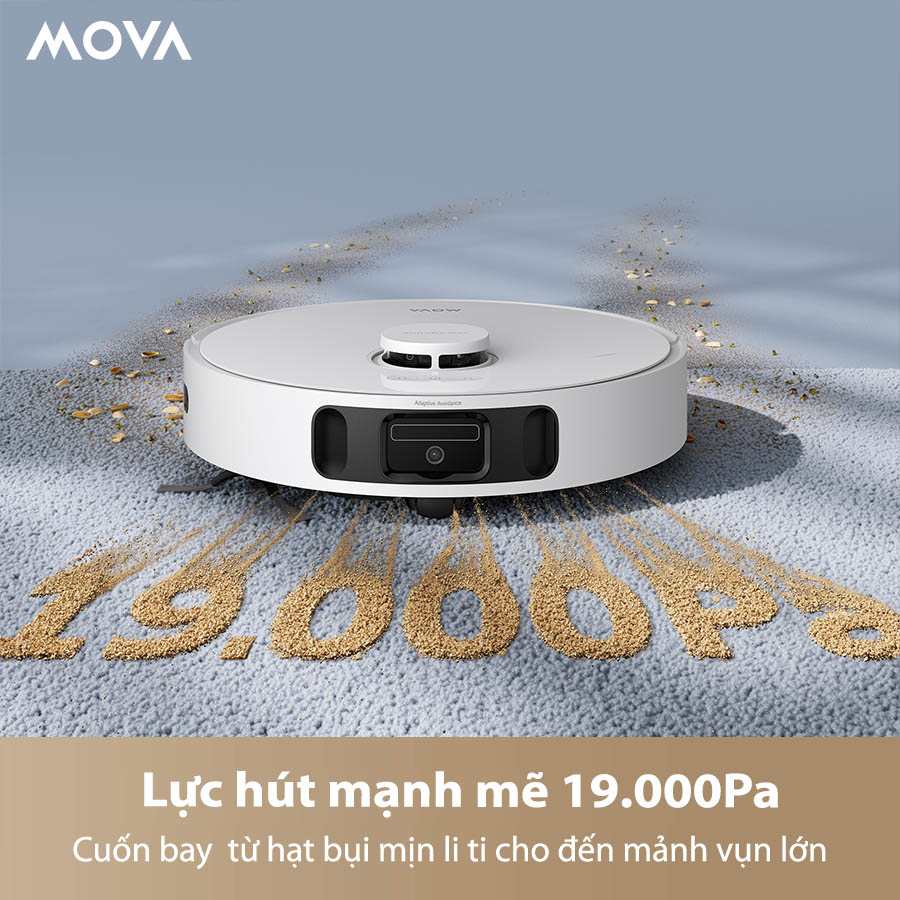 Mova E40 Ultra sử dụng động cơ tốc độ cao lên đến 90.000 vòng/phút, tạo ra lực hút mạnh mẽ 19.000Pa. Nhờ đó, robot dễ dàng thu gom bụi mịn, rác vụn, lông tóc và các tạp chất bám sâu trong khe sàn hoặc thảm. Dù hoạt động với công suất lớn, robot vẫn duy trì độ ồn thấp và vận hành ổn định, phù hợp cho cả không gian sinh hoạt chung và phòng ngủ.
