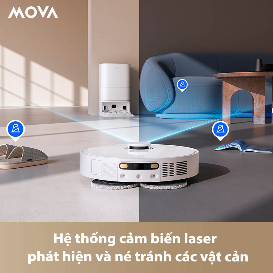 Hệ thống cảm biến laser giúp robot phát hiện và tránh chướng ngại vật hiệu quả trong quá trình di chuyển, hạn chế va chạm với đồ nội thất. Ngoài ra, Mova E40 Ultra còn tối ưu chế độ làm sạch cho gia đình có thú cưng, tự động tăng cường lực hút và tần suất vệ sinh tại các khu vực dễ tích tụ lông, giữ cho không gian sống luôn gọn gàng và dễ chịu.