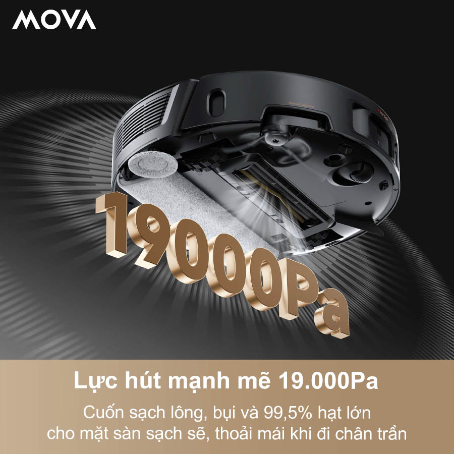 Mova Z50 Ultra là robot hút bụi lau nhà cao cấp ứng dụng công nghệ lau con lăn HydroSync™ thế hệ mới, mang đến khả năng làm sạch sâu vượt trội và tự động hóa gần như hoàn toàn. Thiết bị với lực hút mạnh mẽ 19.000Pa, kếp hợp hệ thống AI Triple-Intelligence™ thông minh và trạm sạc đa năng tự giặt – sấy – khử khuẩn, Mova Z50 Ultra mang đến trải nghiệm dọn dẹp nhàn tênh, sàn sạch bóng mỗi ngày.
